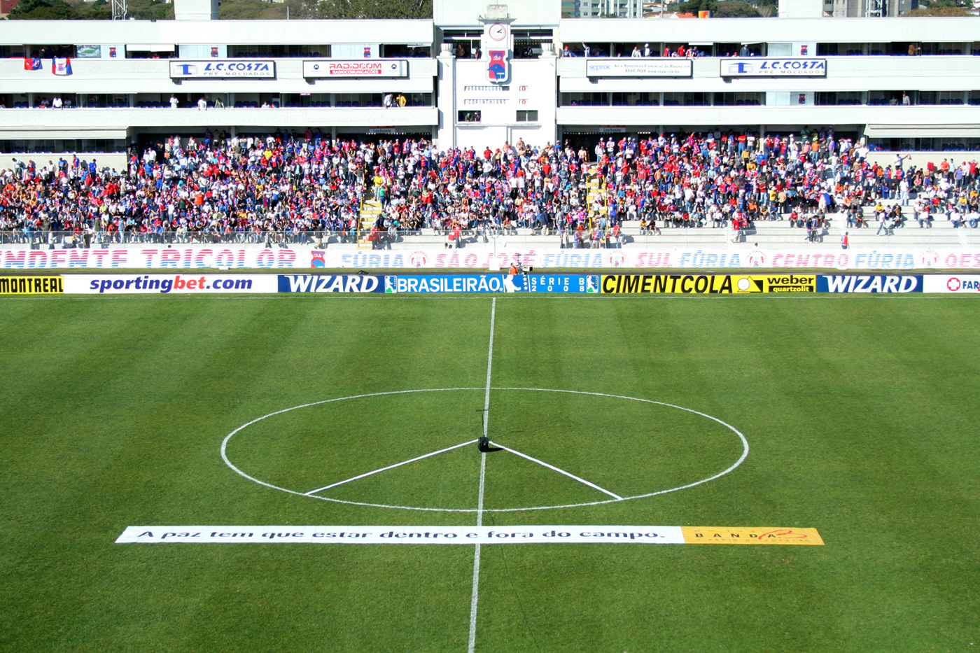 “Voetbal is oorlog”. Wijze woorden van een even zo wijs man. Voetbalcoach Rinus Michels, bijnaam De Generaal, deed deze uitspraak begin jaren ’70, al bestaan daar de nodige twijfels over. Maar is voetbal wel oorlog?Natuurlijk, sommige voetballers gooien de beuk erin, ze kegelen hun opponent onderuit of ze schoppen hem onder het gras. Ze delen behoorlijk uit. Wat delen ze uit? Rotschoppen natuurlijk, of zelfs doodschoppen. Maar oorlog? Is het niet een sport als alle anderen, waarbij het er toevallig net even harder aan toe gaat dan noodzakelijk is? Argentijnen zullen dit betwisten, maar het geeft wél aan welke belangen ermee gemoeid zijn. Hoe het ook zij, geweld op de velden is wel het laatste waar met name de spelers zélf behoefte aan hebben. Radio Banda , een Braziliaanse radiozender, heeft dit gegeven gebruikt voor hun campagne. De boodschap: “Er moet zowel binnen als buiten het stadion vrede zijn”. Sport kan soms zo ontroerend zijn.