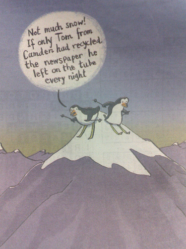 In de Londense metro blijven dagelijks duizenden, zoniet miljoenen kranten liggen. Deze verdwijnen allemaal in de vuilnisbak, terwijl hergebruik vele hectare bos kan schelen.  Al die forensen stimuleren zo het broeikaseffect en worden hier door The London Paper persoonlijk op aangesproken: Tom uit Camden kan ook Jerry uit Amsterdam zijn.
