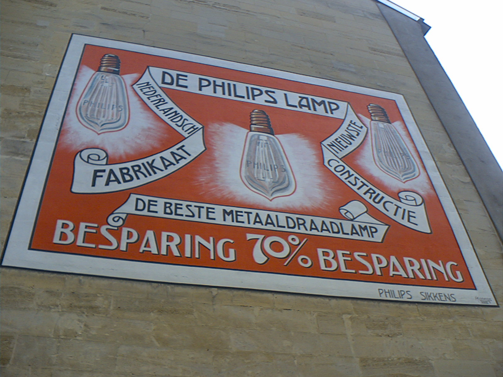 Tijdens een lang en ontspannen weekend in het Zuid-Limburgse Valkenburg viel mij op dat men in het zuiden van nostalgie houdt. Ook op het gebied van marketing. Getuige twee prachtige schilderingen die ik in het heuvelrijke dorp tegenkwam. De eerste was er één om de gloednieuwe Philipslamp aan te prijzen. Prachtig hoe de begeleidende reclame-uiting van Neerlands trots op het gebied van innovatie op een muur van een Limburgs koffiehuis bewaard blijft.