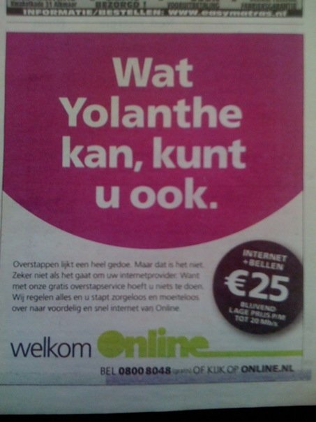 Sterke inhaker van internetprovider Online op het nieuws/de mediastunt rond Jan en Yolanthe: