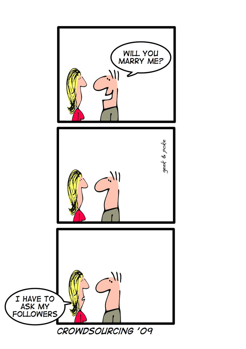 by Jerry HoutmanTwee weten meer dan één, dus laat vooral iedereen meepraten en bijdragen. De kracht van communities is het basisgegeven van crowdsourcing, de reden dat mensen voor allerhande kwesties hun Hyvesnetwerk of Twittervolgers inschakelen. Maar je kan het natuurlijk altijd overdrijven.