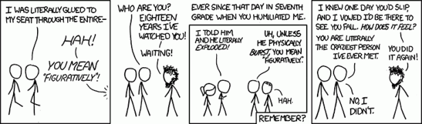 Ook taalnazi’s in hart en nieren moeten een figuurlijke manier van spreken niet altijd letterlijk nemen. Of andersom.